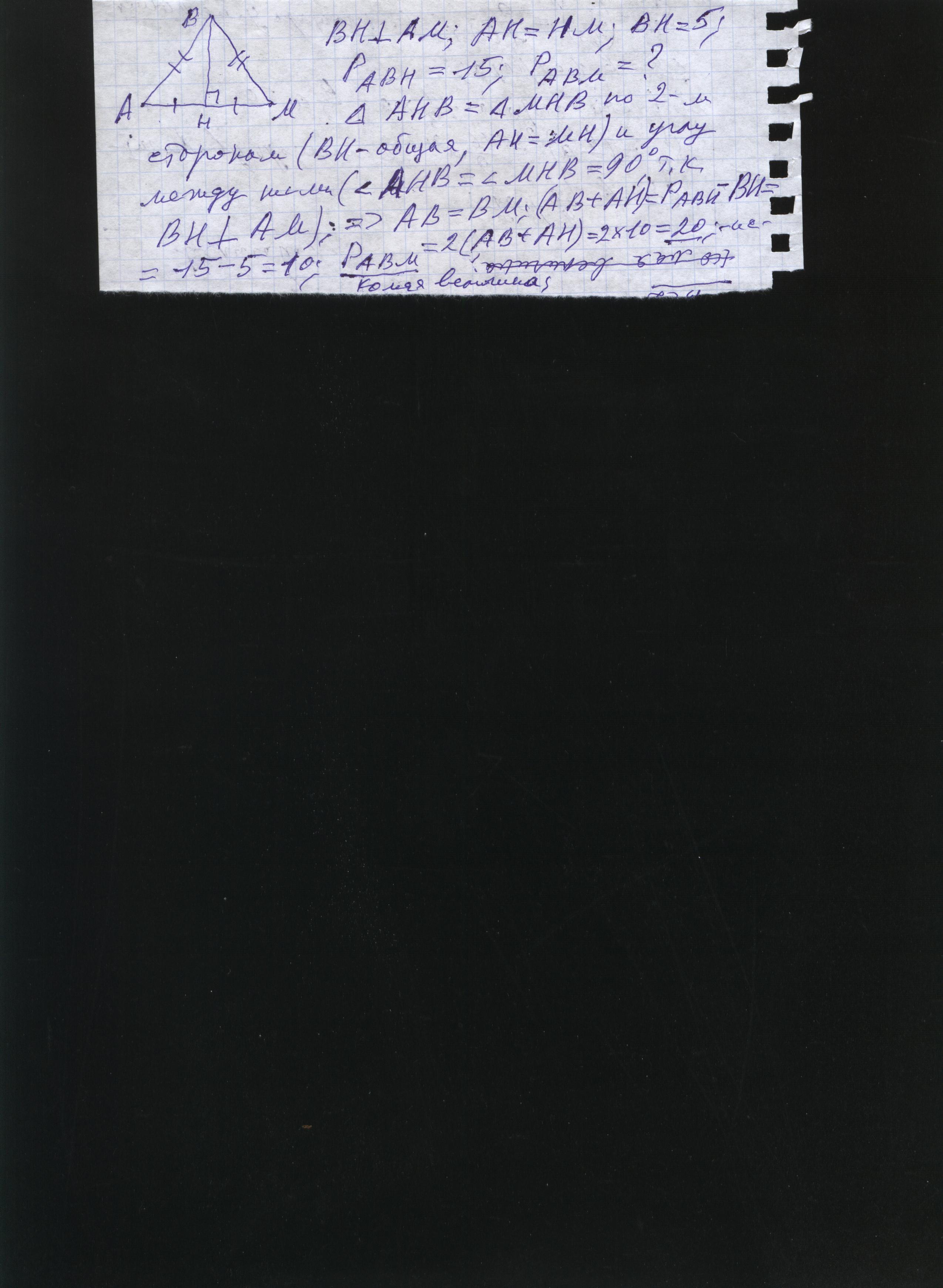в треугольнике высота BH делит сторону AM пополам и равна 5 см периметр треугольника ABH равен 15 см найдите периметр треугольника ABM