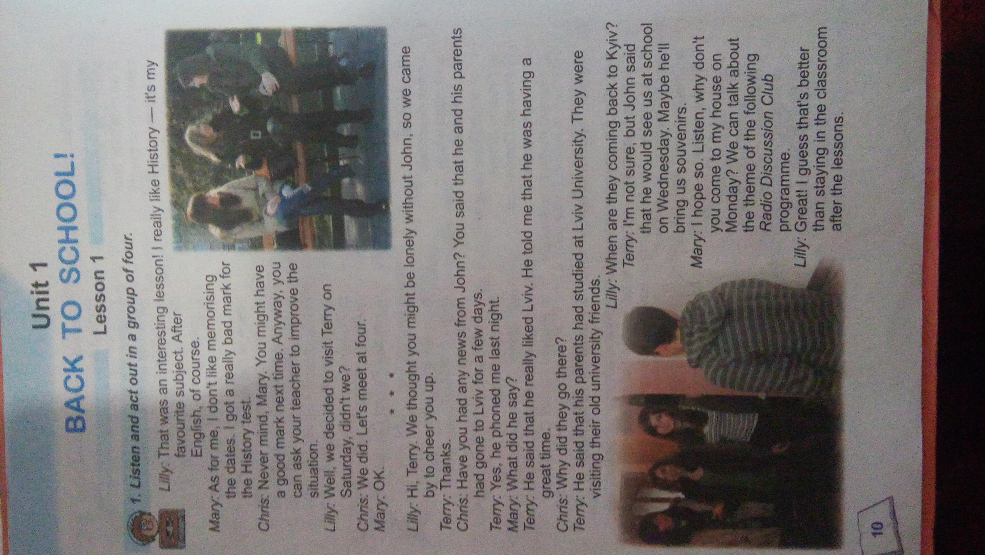 Терри: Не уверен, но Джон сказал, что встретится с нами в школе в среду. Может быть он привезёт нам сувениры.