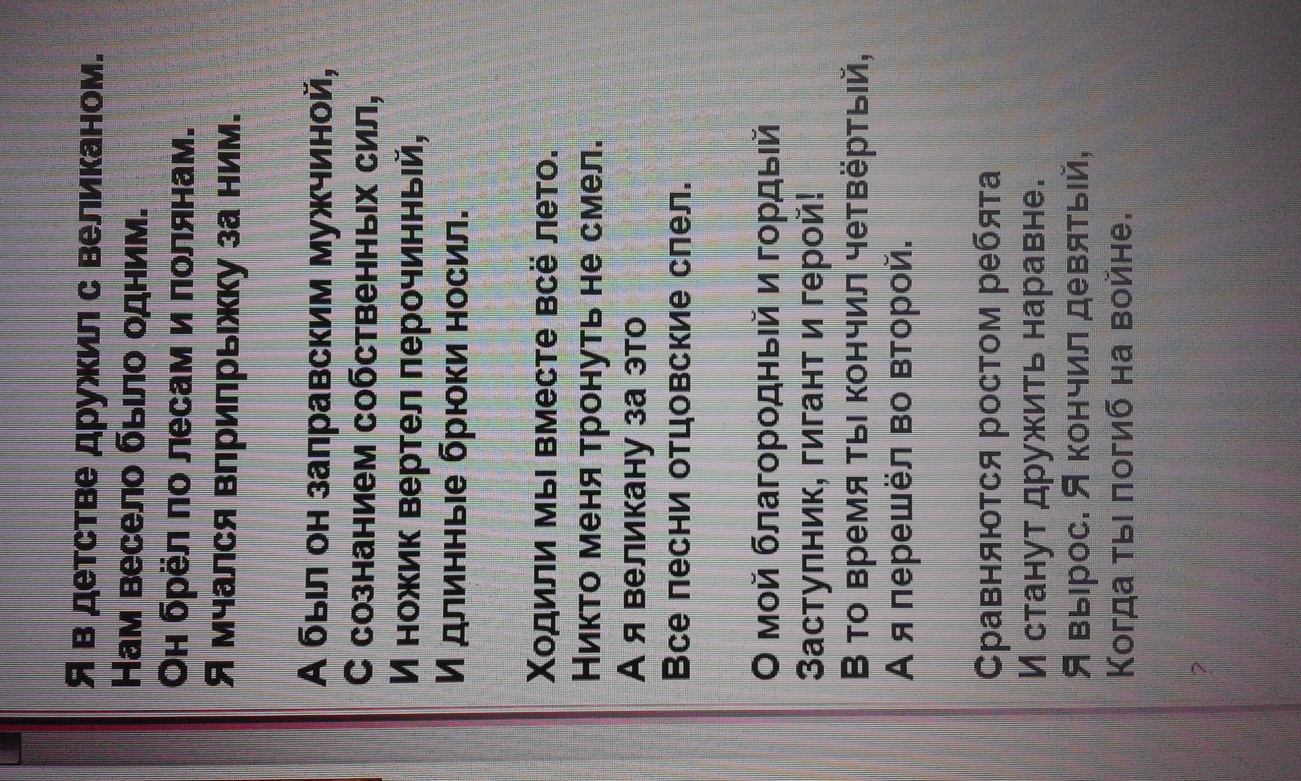 Про мій благородний і гордийСамовидець, гігант і герой!В той час ти скінчив четвертий,А я перейшов у другий.