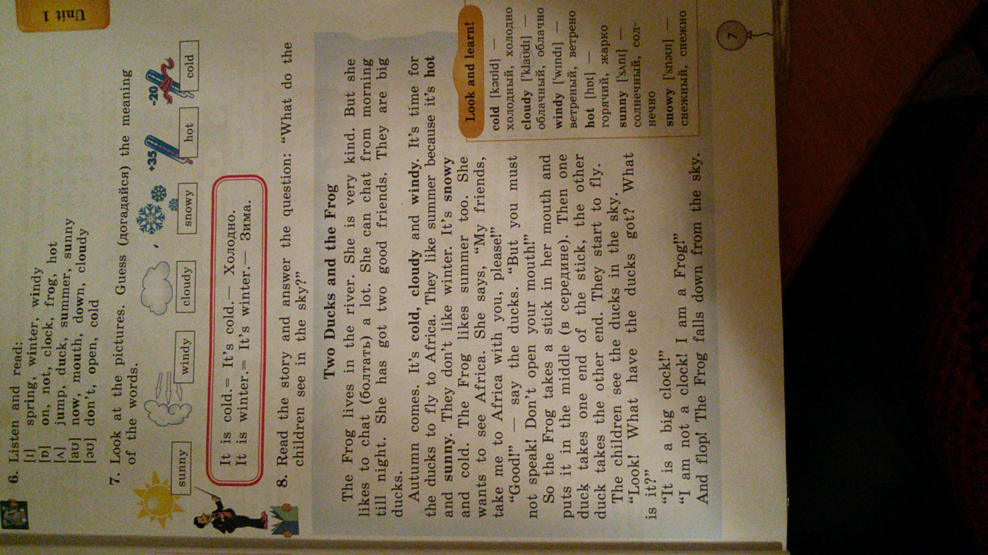 Наступает осень. Холодно, пасмурно и ветрено. Пришло время для уток, лететь в Африку. Там, как летом, потому что жарко и солнечно. Они не любят зиму. Она холодная и снежная. Лягушка тоже любит лето. Она хочет увидеть, Африку. Она говорит : "друзья мои, возьмите меня в Африку с вами, пожалуйста!"
