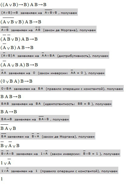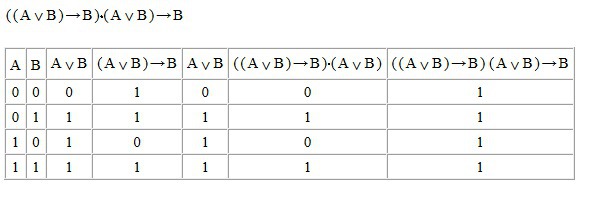 Значит и это выражение тождественно истинное. Т.е. Всегда принимает значение 1.