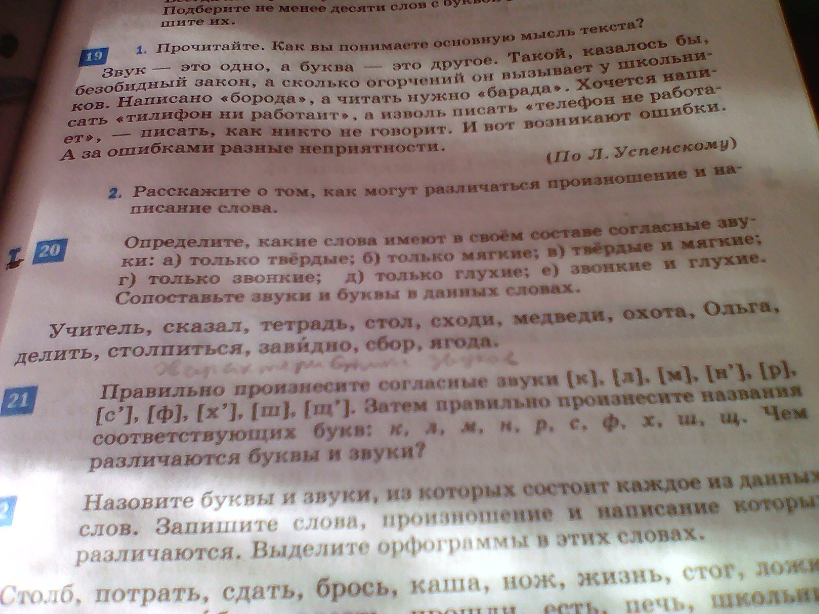 2) Учитель [уч'ит'эл' ], делить [ д'эл'ит' ].