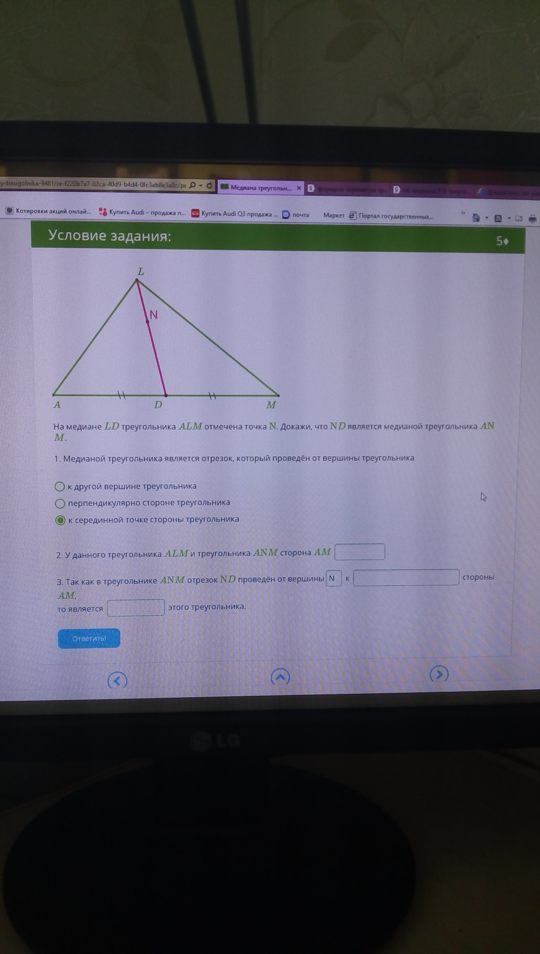 О! А может к середине стороны? И тогда это точно биссектриса?