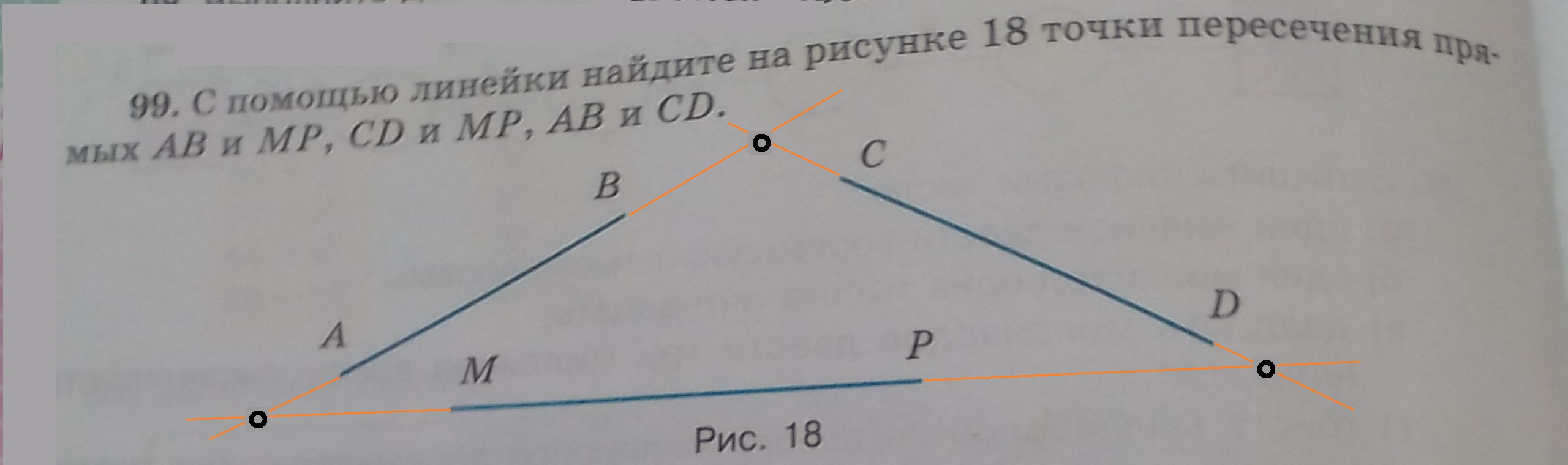 Превращаем отрезки в прямые линии - продолжаем в обе стороны и получаем точки пересечения.
