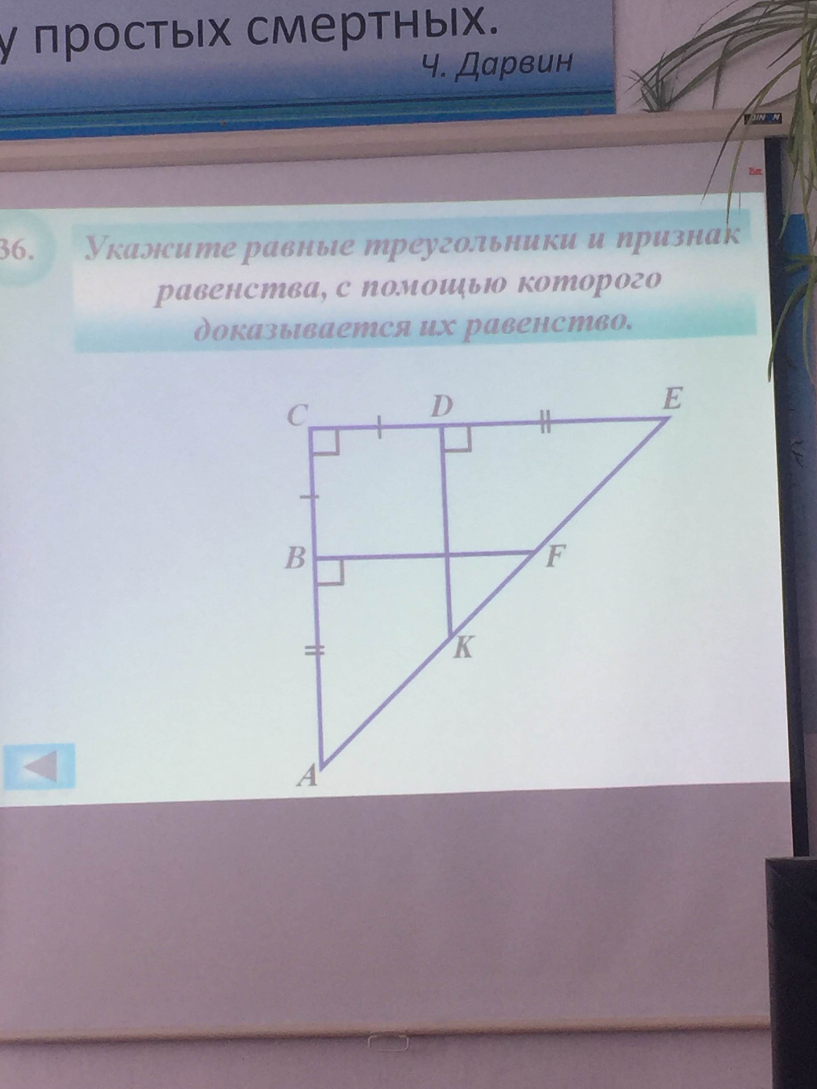 укажите равные треугольники и признак равенства с помощью которого доказывается их равенство ....