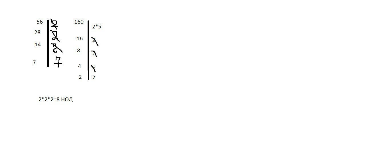 НОД (56; 160) = 2 * 2 * 2 = 8