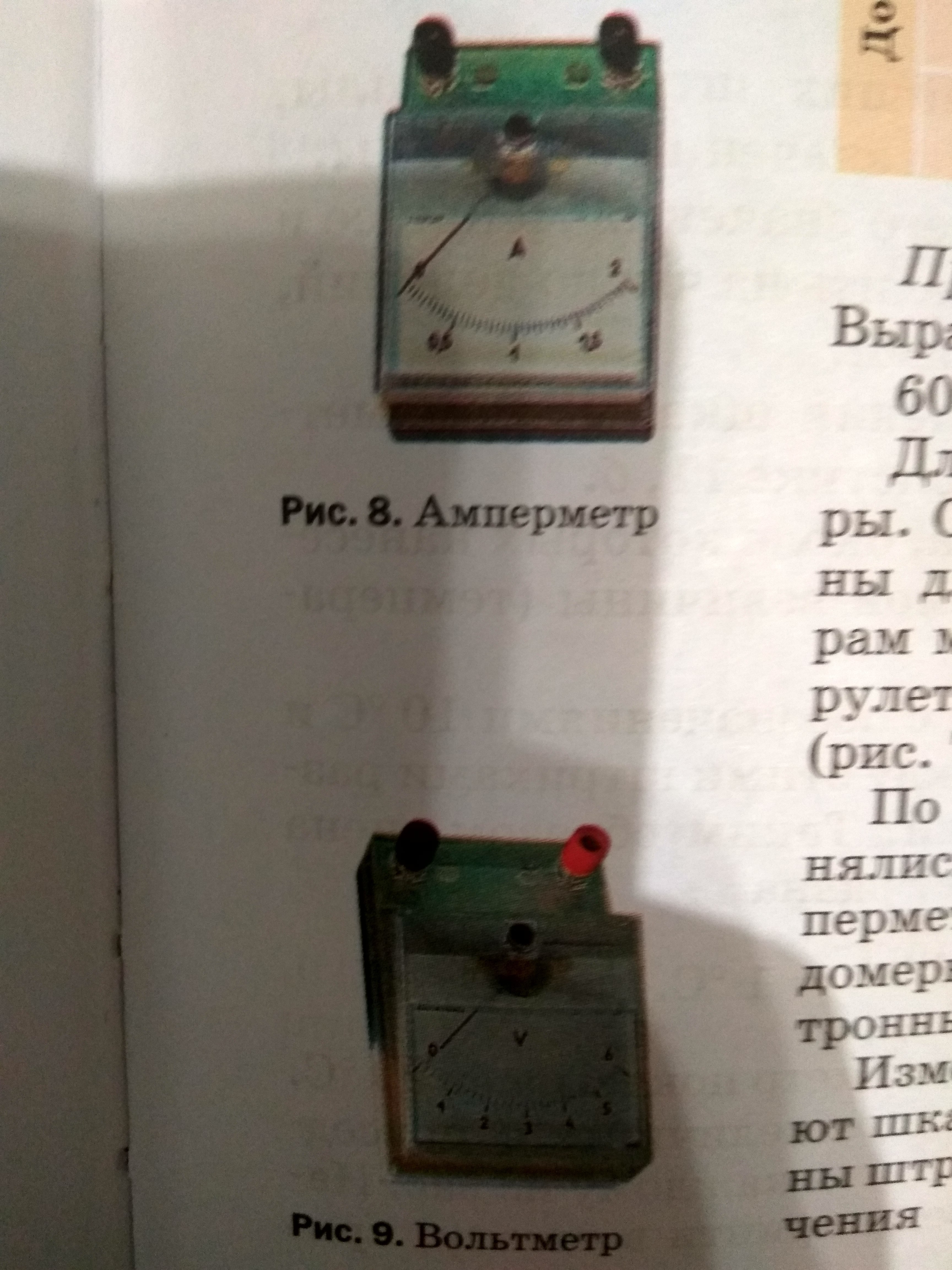 по рисункам 8 и 9 определите цену деления амперметра и вольтметра