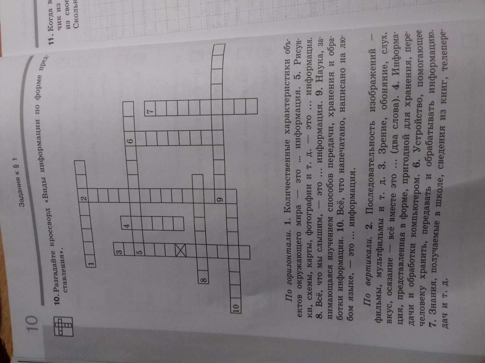 2. Видеоинформация 3. Органы чувств 6. Компьютер 7. Информация.
