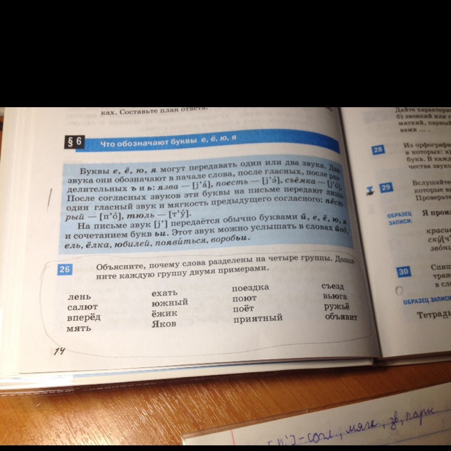 4. гласные Е Ё Ю Я стоят после разделительных Ь и Ъ поэтому они дают два звука. съесть ученье