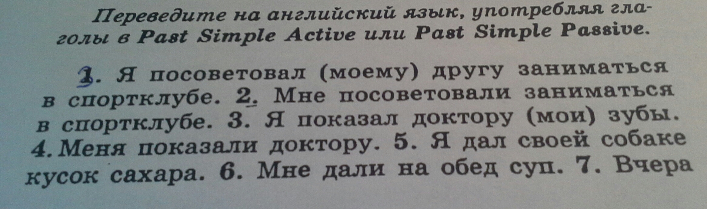 1. I adviced my friend to go to the gym.
