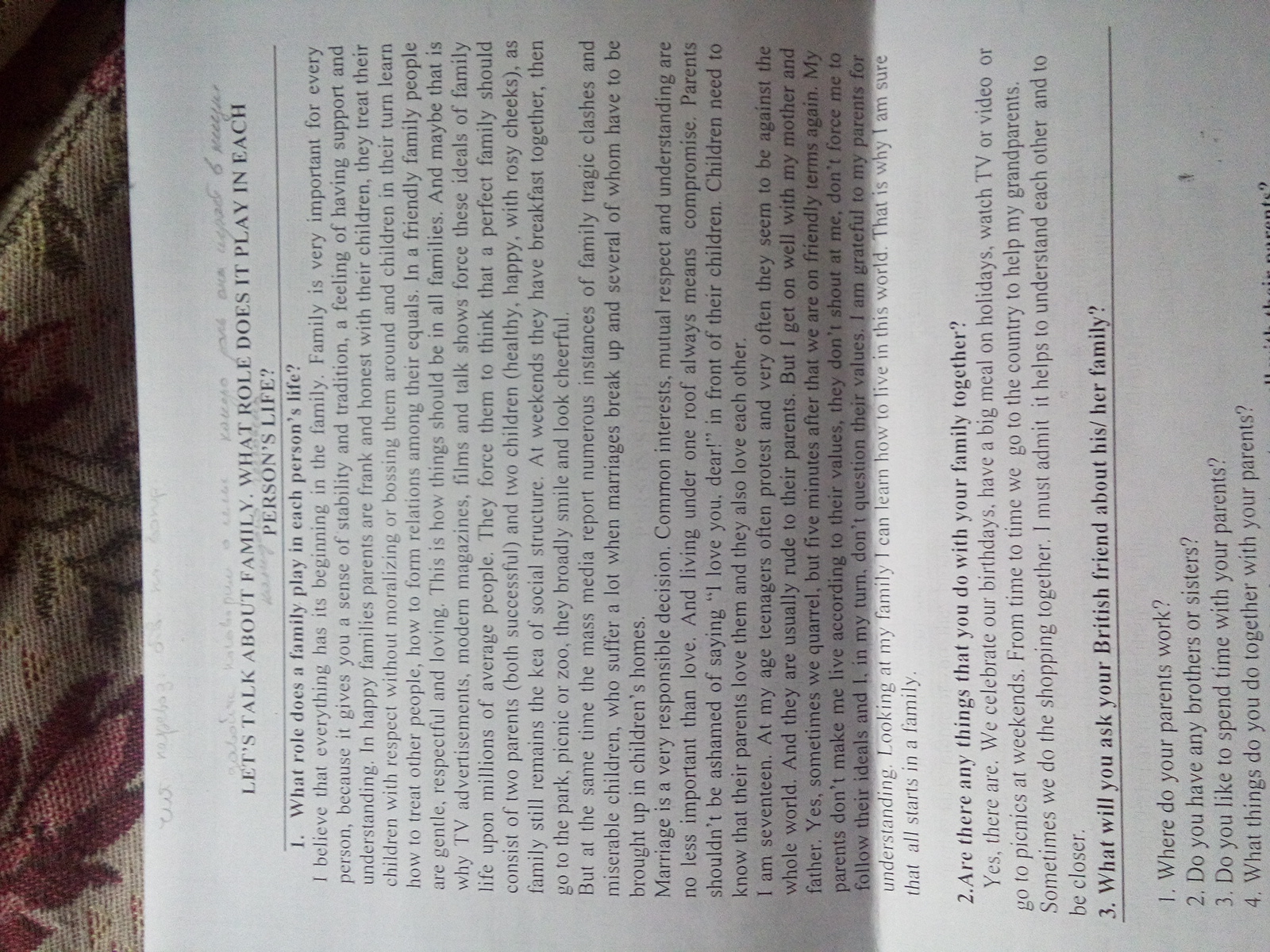 1. Давайте поговорим о семье. Какую роль она игарет в жизни каждой личности?