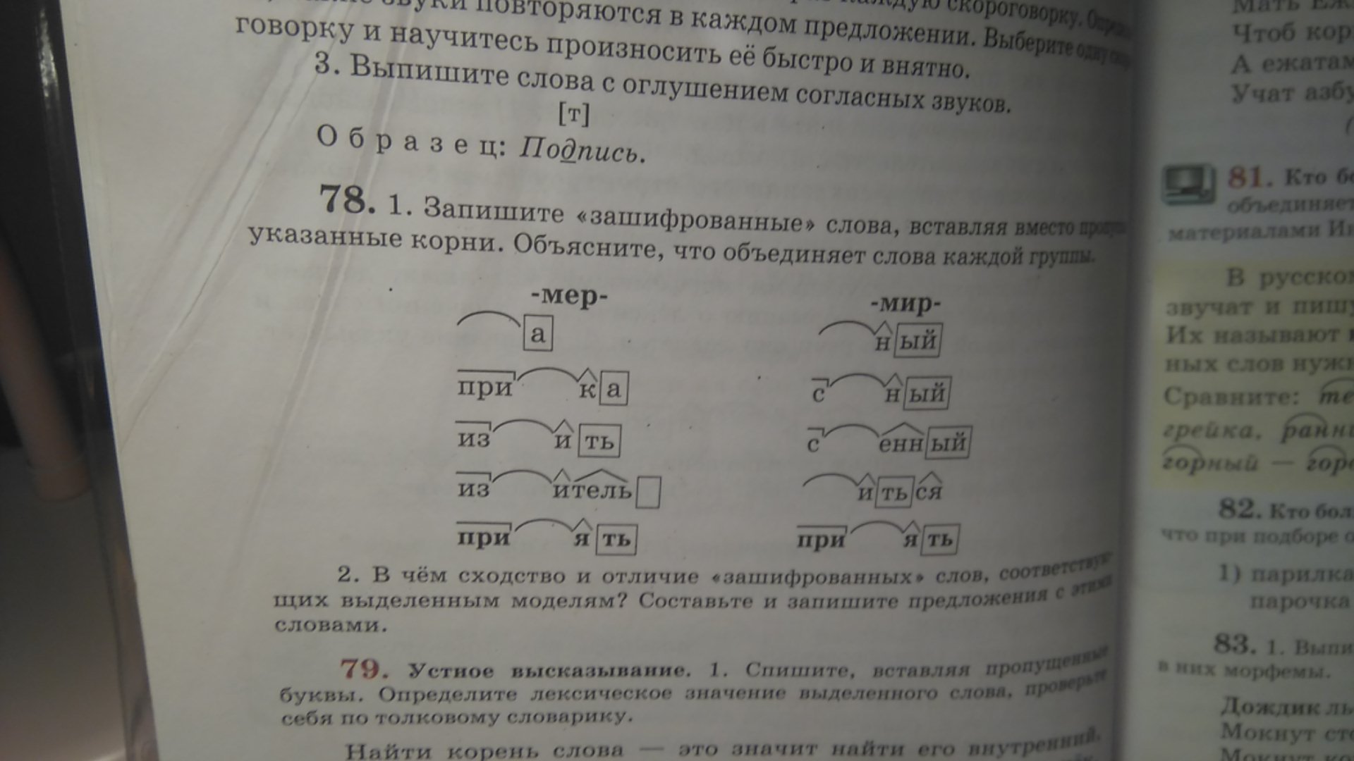 со значением -мер- означает мерить в прямом смысле,например,мерить одежду или измерять длину
