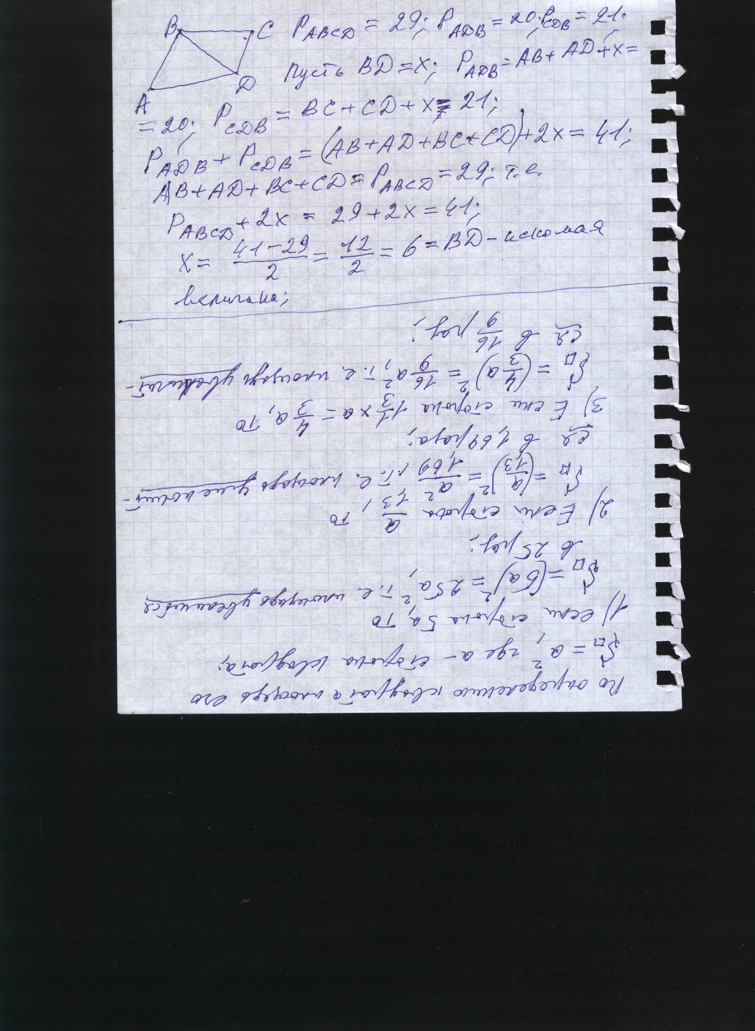 Периметр чотирикутника АВСD дорівнює 29 см, периметр трикутника ADB- 20 см, а трикутника CDB - 21 см . Знайдіть довжину діагоналі ВD