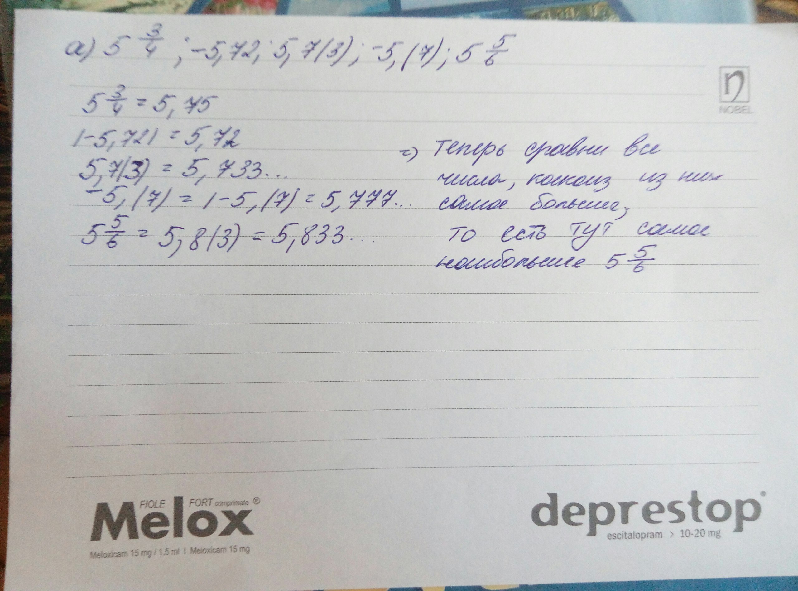 а) 5 3/4 ; -5,72 ; 5,7 (3) ; -5,(7) ; 5 5/6;