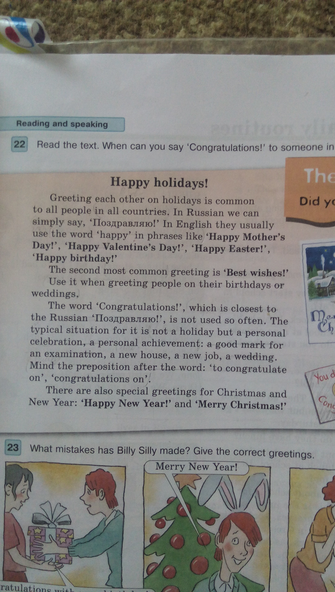 Поздравление друг друга с праздниками является общим для всех людей во всех странах. В русском языке мы можем просто сказать: «Поздравляю!» В английском языке они обычно используют слово «happy» в словосочетаниях, таких как «С Днем Матери!», «С Днем святого Валентина!», «С Пасхой!», «С днем рождения!»