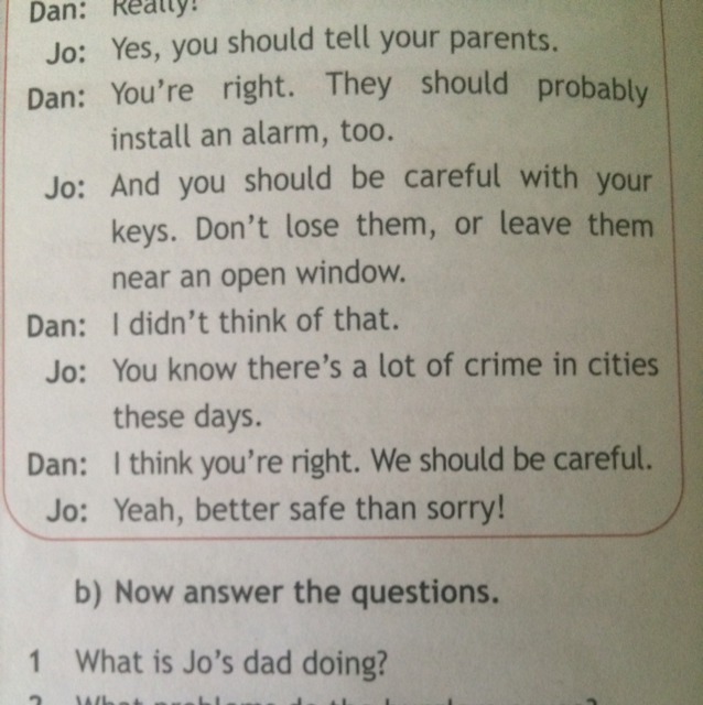Джо: И вы должны быть осторожны с ключами. Не потеряйте их, или оставте их возле открытого окна.