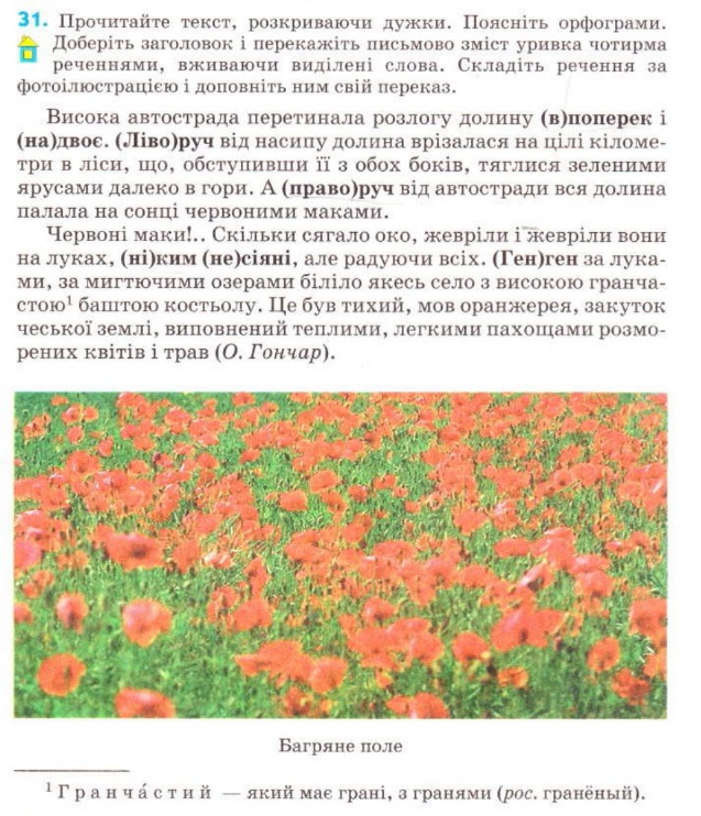 висока автострада перетинала долину впоперек і надвоє, врізался на цілі километри в ліс ліворуч і праворуч палала червоними маками. вони некім не сіяні, але радуючі всіх. ген ген за луками біліло село і мигало озерами. Ту красу червоних маків я не можу забути досихпір.