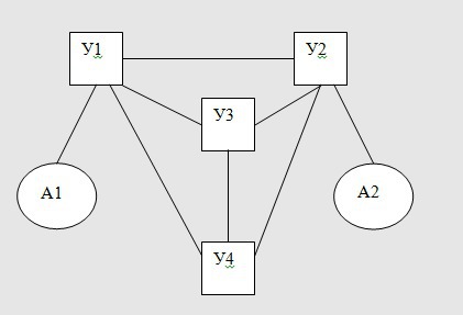 . Укажите все возможные варианты прохождения сообщения от абонента A1 до абонента A2 для приведённой ниже архитектуры глобальной сети.