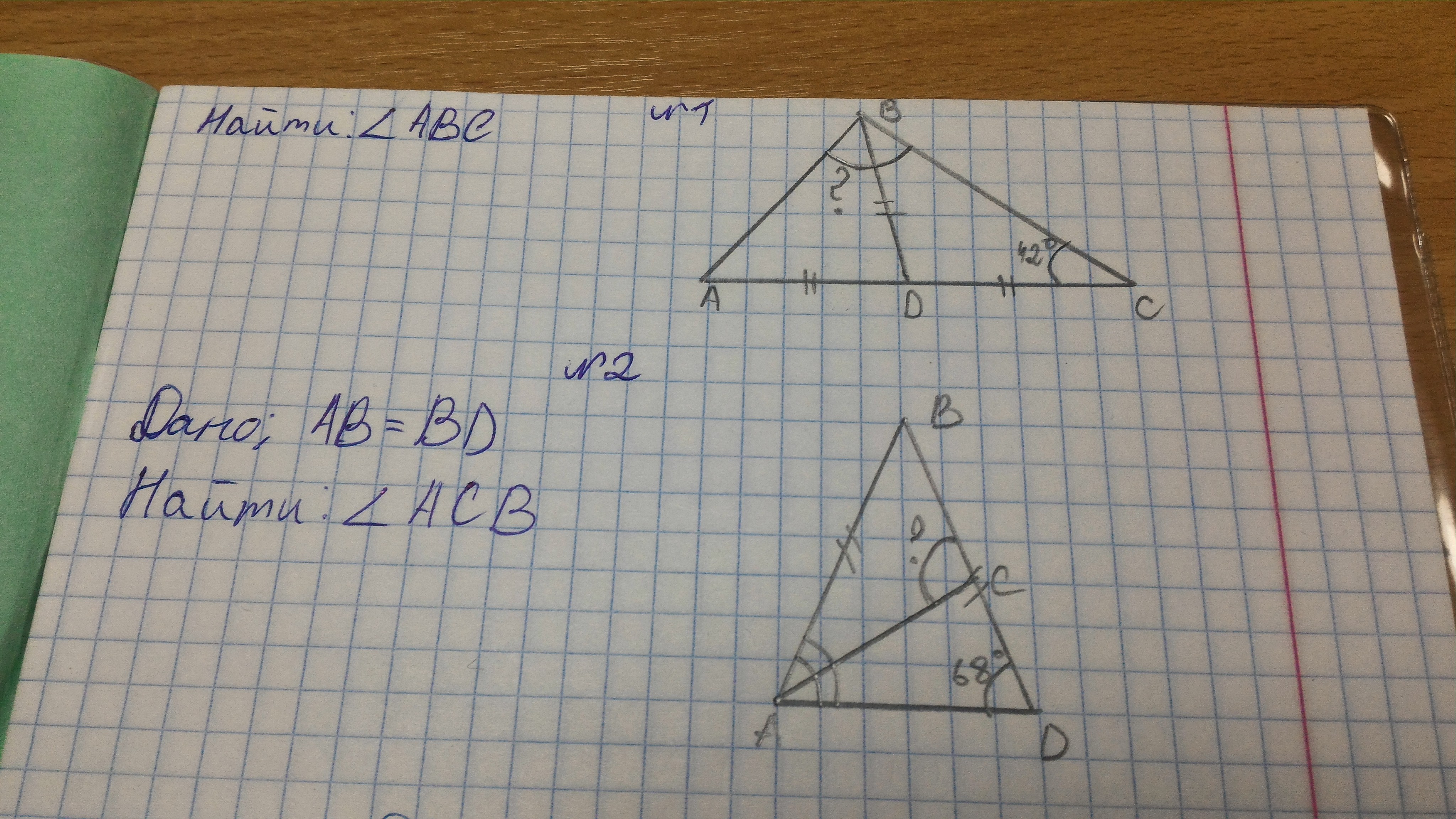 АВС= 180- (42+42)=96