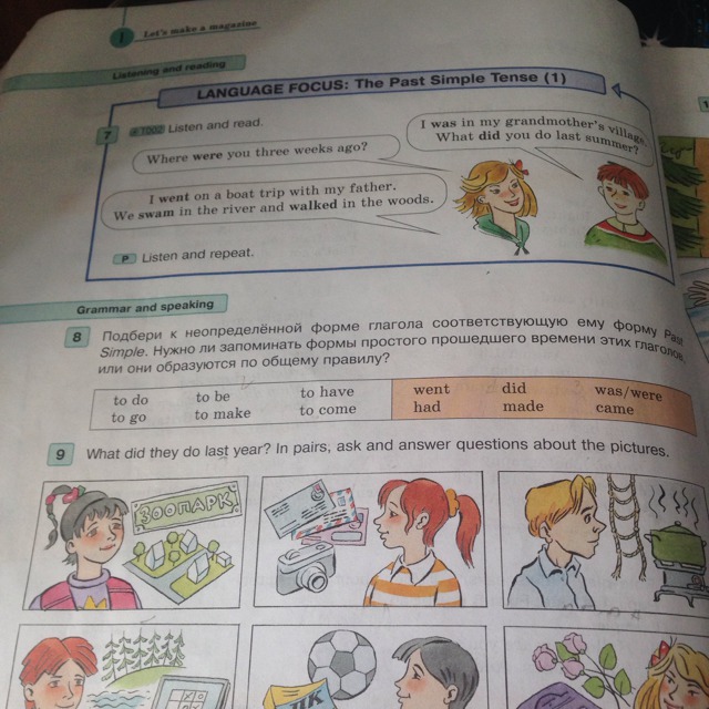 to do-did; to go-went; to be-was/were; to make-made; to have-had; to come-came. Данные формы глаголов нужно запоминать, т. к. они не подчиняются правилу образования простого глаголов прошедшего времени (добавление окончание -ed к глаголу и отбрасывание частицы to)