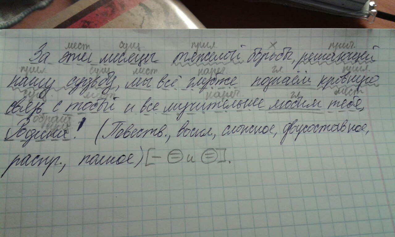 Синтаксический разбор этого текста: За эти месяцы тяжёлой борьбы, решающей нашу судьбу, мы всё глубже познаём кровную связь с тобой и всё мучительнее любим тебя, Родина!