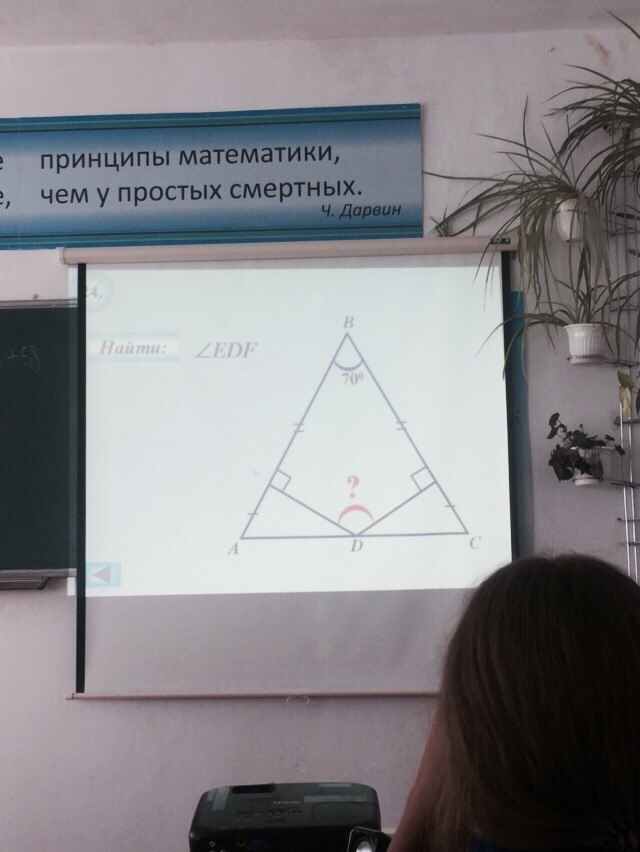Задача 1. 1) Т.к АВ = АЕ + ЕВ, ВС = CF + FB, AE = CF по условию, EB = FB по условию, то АВ = ВС. 2) Т.к АВ = ВС, то ΔАВС равнобедренный. 3) Т.к ΔАВС равнобедренный, то ∠А = ∠С = (180° - ∠С) : 2 = (180° - 70°) : 2 = 110° : 2 = 55°. 4) Т.к ∠BED = ∠BFD = 90°, то ∠AED = ∠CFD = 90° (смежные). 5) Т.к ∠AED = ∠CFD = 90°, ∠А = ∠С = 55°, AE = CF по условию, то ΔAED = ΔCFD по стороне и двум углам. 6) Т.к ΔAED = ΔCFD, то ∠EDA = ∠FDC = 180° - 90° - 55° = 35° (сумма всех углов треугольника 180°). 7) Т.к ∠EDA = ∠FDC = 20°, то ∠EDF = 180° - 35° * 2 = 180° - 70° = 110° (угол ADC развёрнутый). Задача 2. 1) ∠NOS = 90° - ∠ONS = 90° - 65° = 25° (сумма острых углов прямоугольного треугольника 90°). 2) ∠O = ∠NOS * 2 = 25° * 2 = 50° (ON - биссектриса угла О). 3) ∠OPS = 90° - ∠O = 90° - 50° = 40°. ОТВЕТ: 1. 110°, 2. 40°.