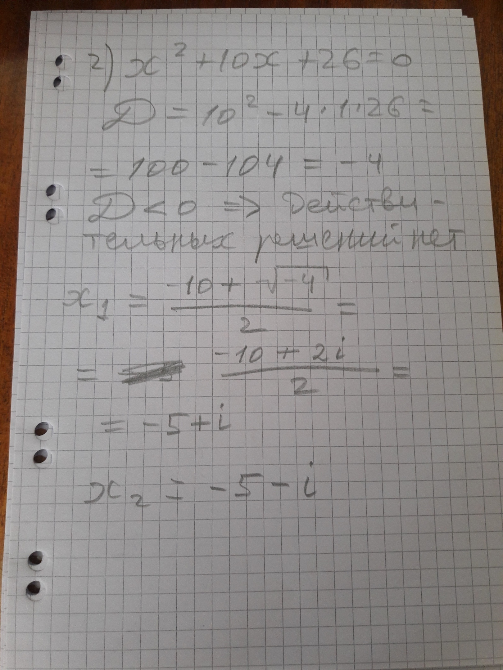 Если работать с комплексными числами умеете, то 2 и 3 нужно весь переписывать, если нет, то можно остановиться на фразе "действительных решений нет"