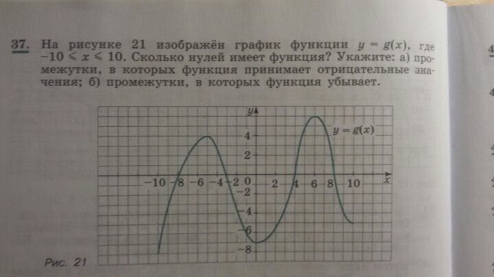 Отрицательное значение она принимает в таких промежутках: (-10;-8), (-3;0), (0;4), (8;10), а положительного - (-8;-3), (4;8)