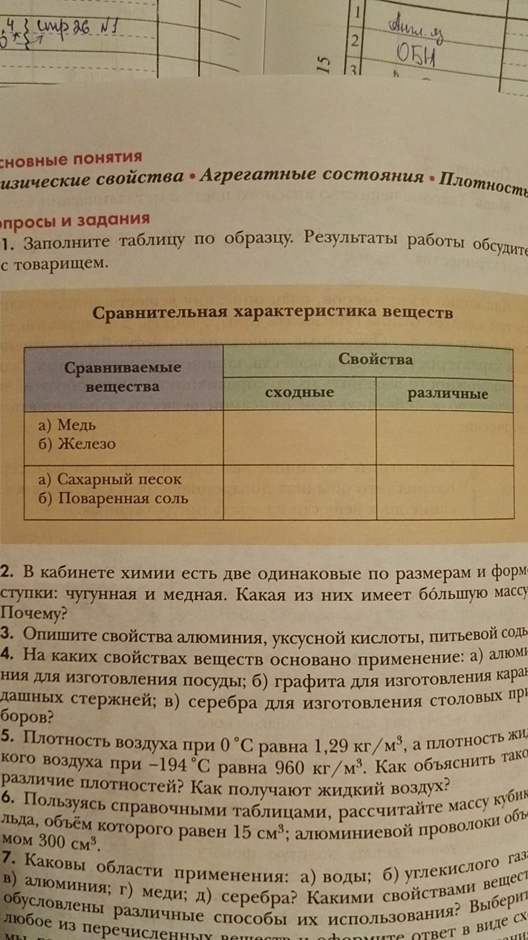 2)Поваренная соль и сахар. Сходства: белый кристаллический порошок, без запаха, хорошо растворим в воде. Различия: сахар имеет сладкий вкус, соль - соленый.