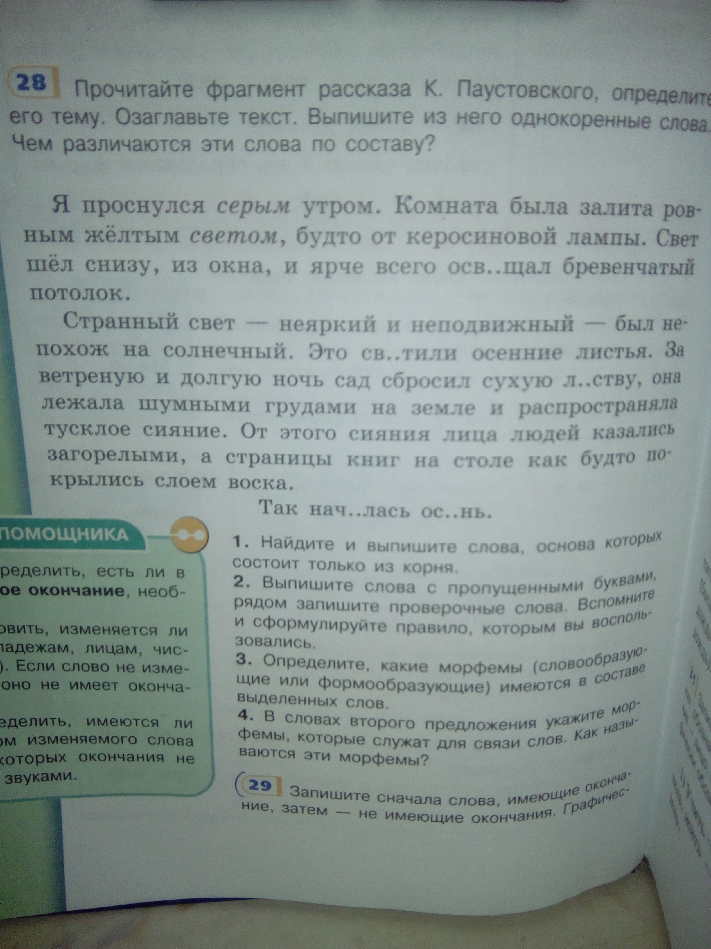 2) св...тили- свет, л...ству-лист, нач...лась-начало, ос...нь- осенний
