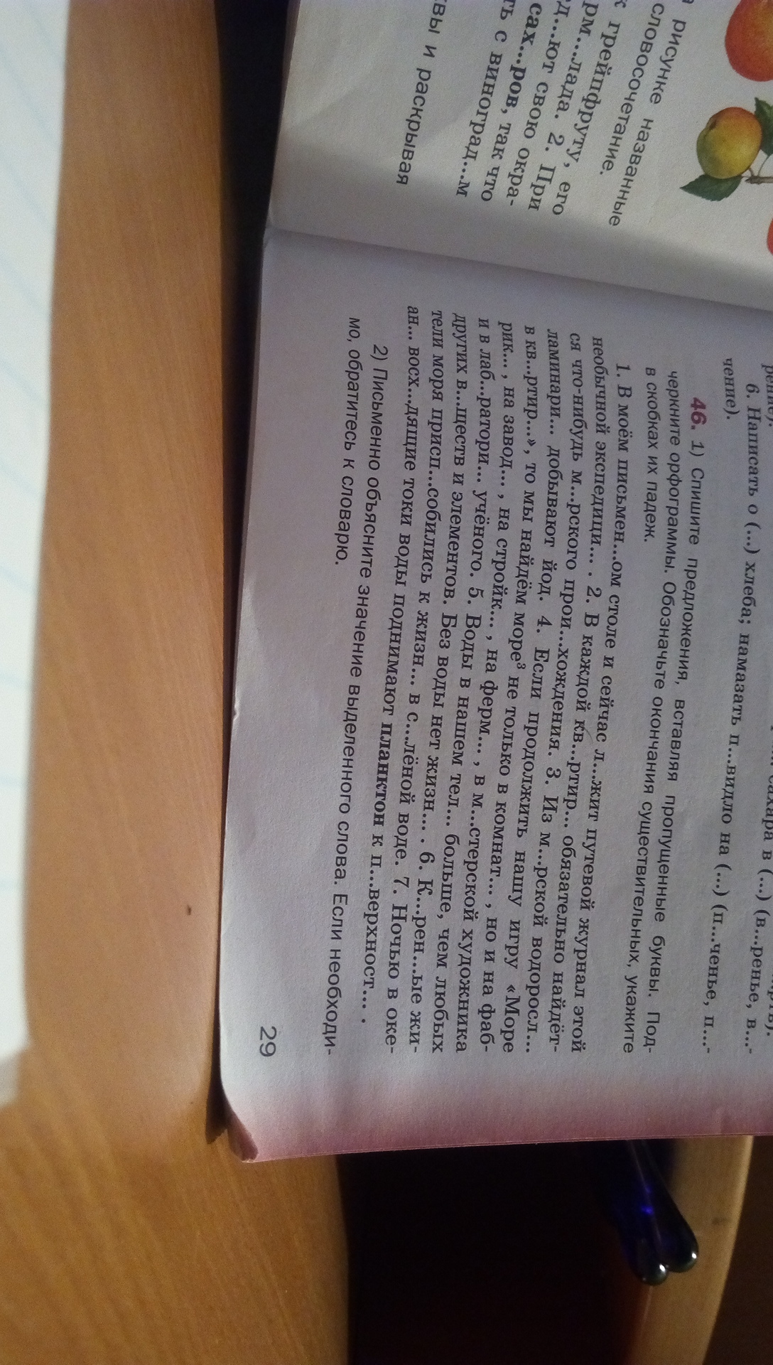 1) Спешите предложения, вставляя пропущенные буквы. Подчеркните орфограммы. Обозначьте окончания существительных,укажите в скобках их падеж