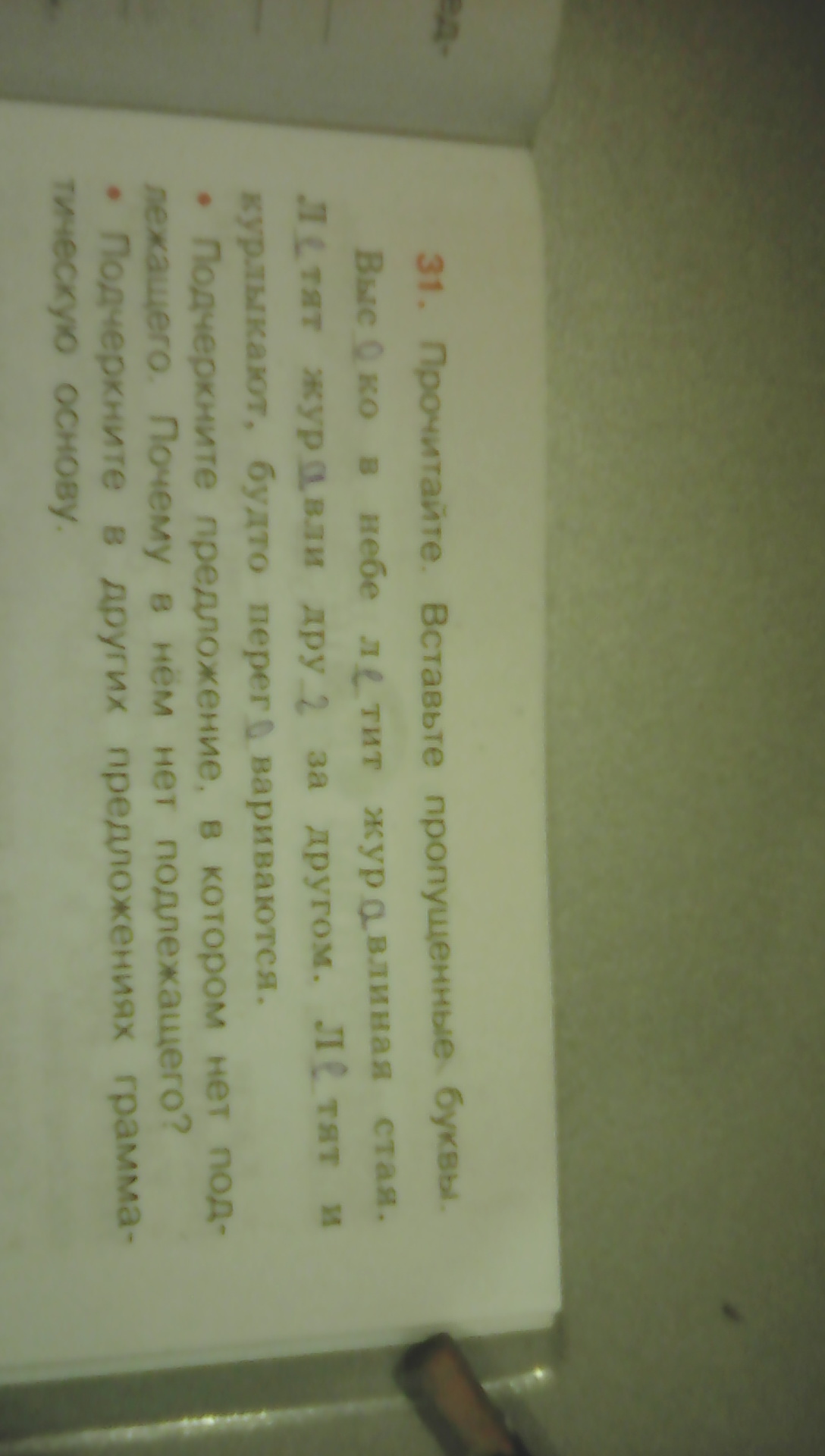 1. В предложении "Летят и курлыкают,будто переговариваются."Т.к подлежащие можем восстановить из предыдущего предложения.