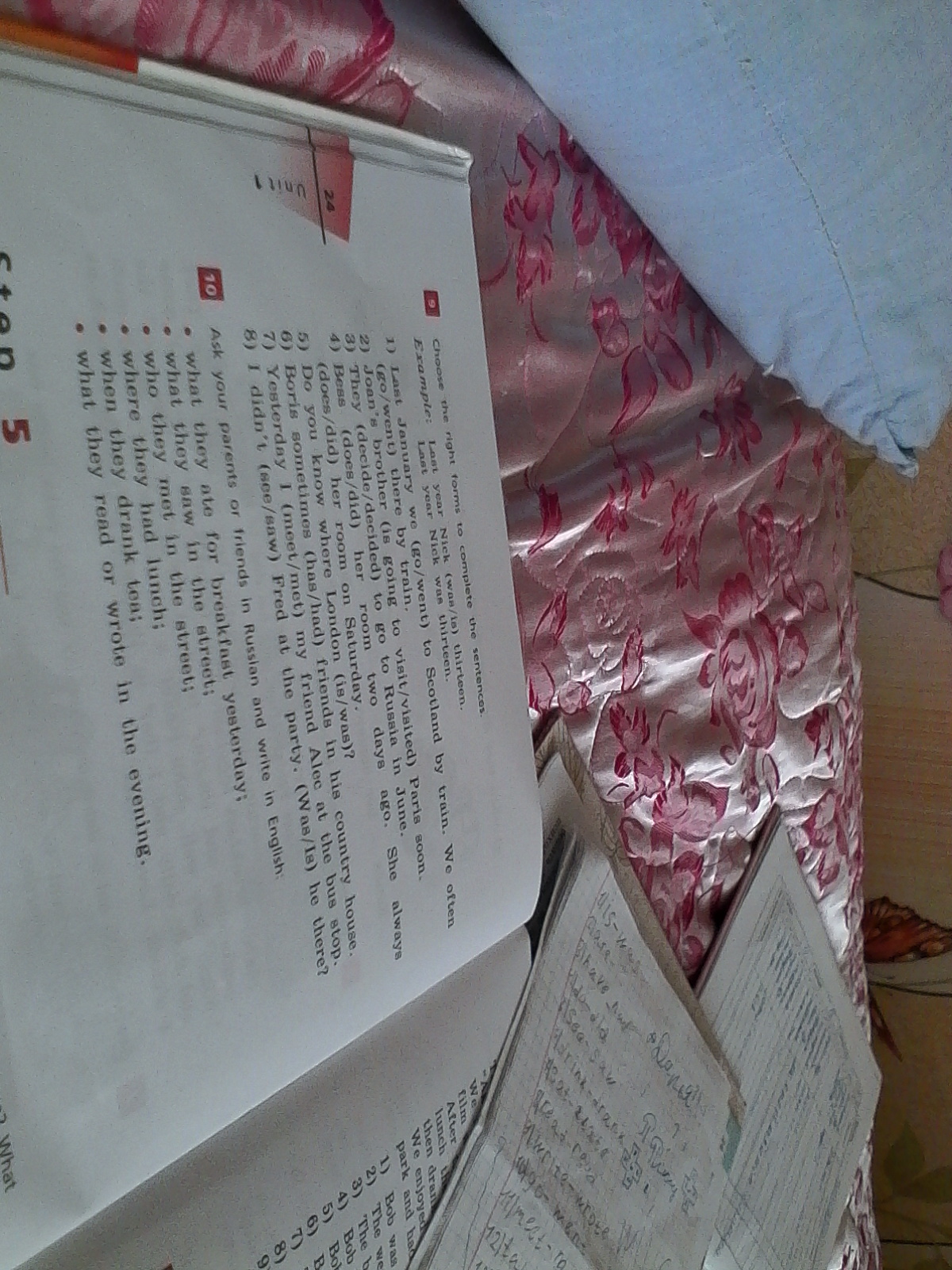 8)Я думаю надо saw, и was, но мне кажется что можно написать и так, и так.