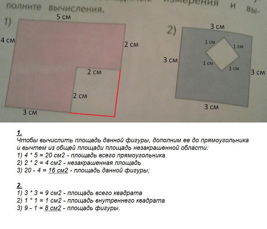 как можно вычислить площадь каждой фигуры? сделайте необходимые измерения и выполнить вычисления