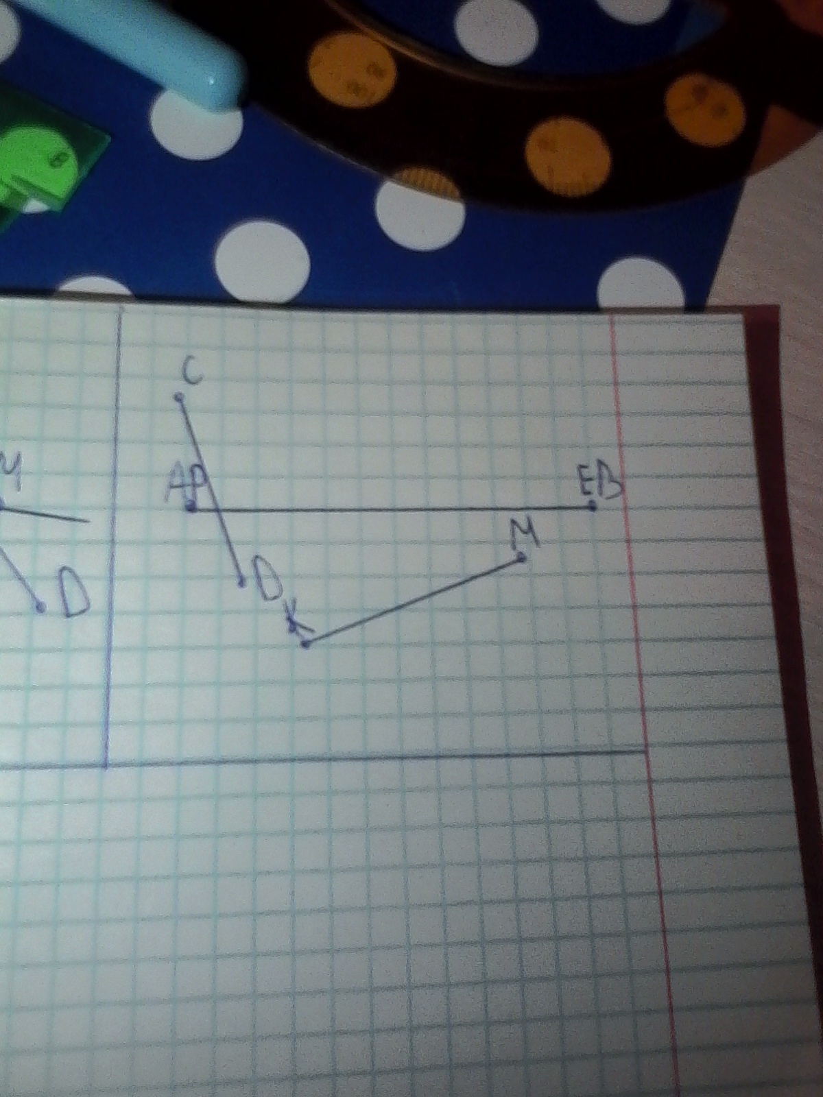 начертить прямую АБ и отрезки СD КМ и РЕ так чтобы отрезок СD пересекал прямую АВ,отрезок КМ не пересекал эту прямую.а отрезок РЕ лежал на прямой АВ