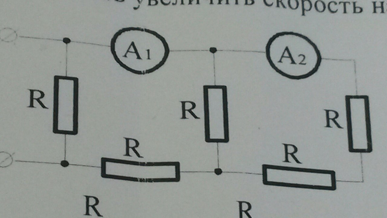 Помогите пожалуйста решить задачу. Буду очень благодарна. Амперметр А1 показывает 0.21 А. Что показывает амперметр А2, если все сопротивления одинаковы.
