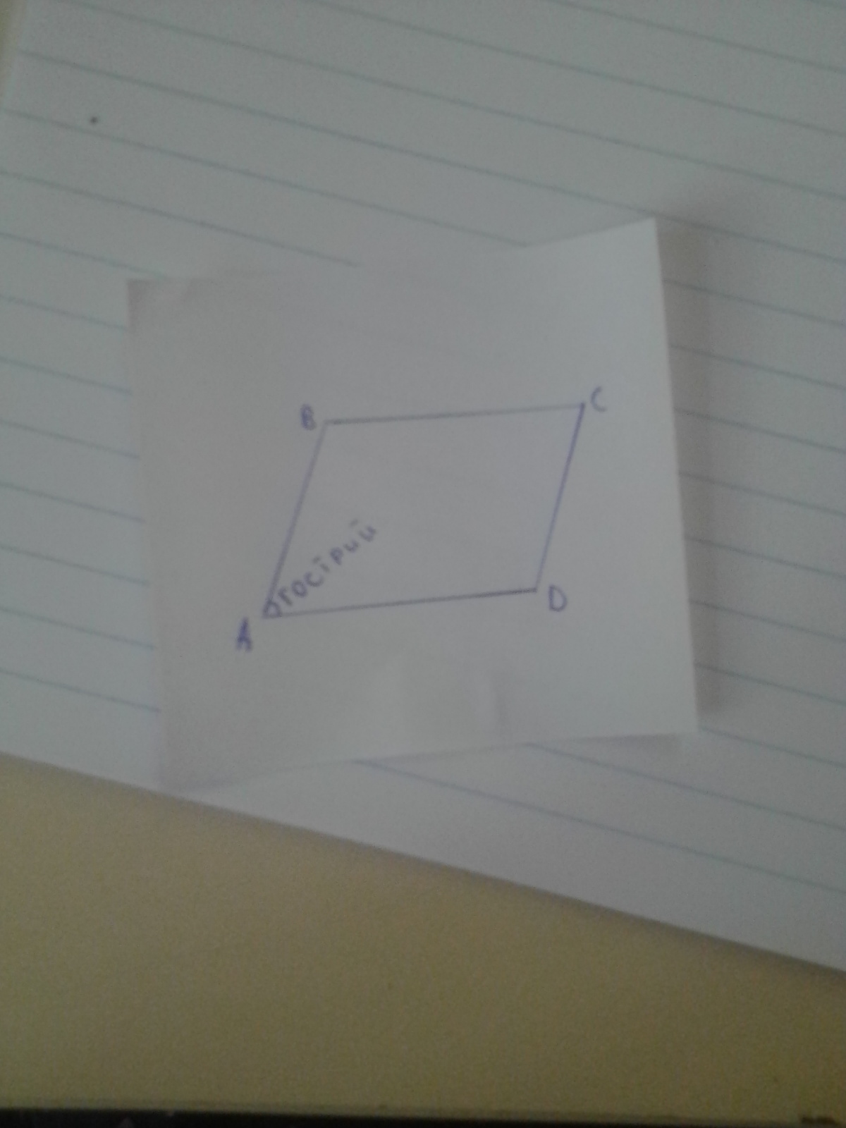 паралелограма кут А гострий