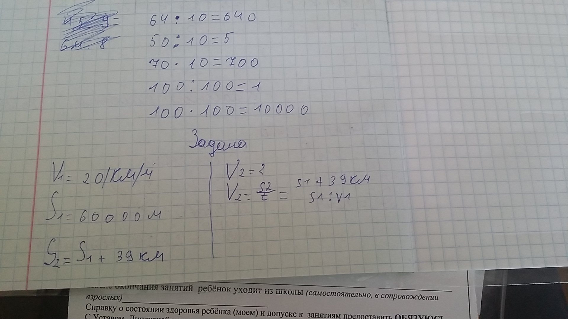 вилосипедист ехал со скоростью 20км/ч и проехал 60000м,а второй проехал на 39 км/ч больше.Какая скорость была у второго вилосипедист,