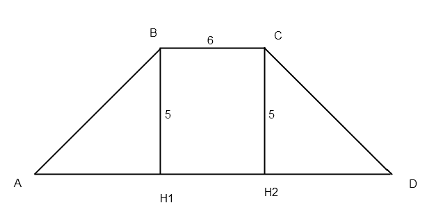 ну у еня получилось 16.. решается так: так как треугольник АBH1 имеет углы при основании 45. то он равнобедренный и AH1 = BH1 = 5. значит AH1 = DH2 = 5. => что большее основание = 6 + 5 + 5 = 16