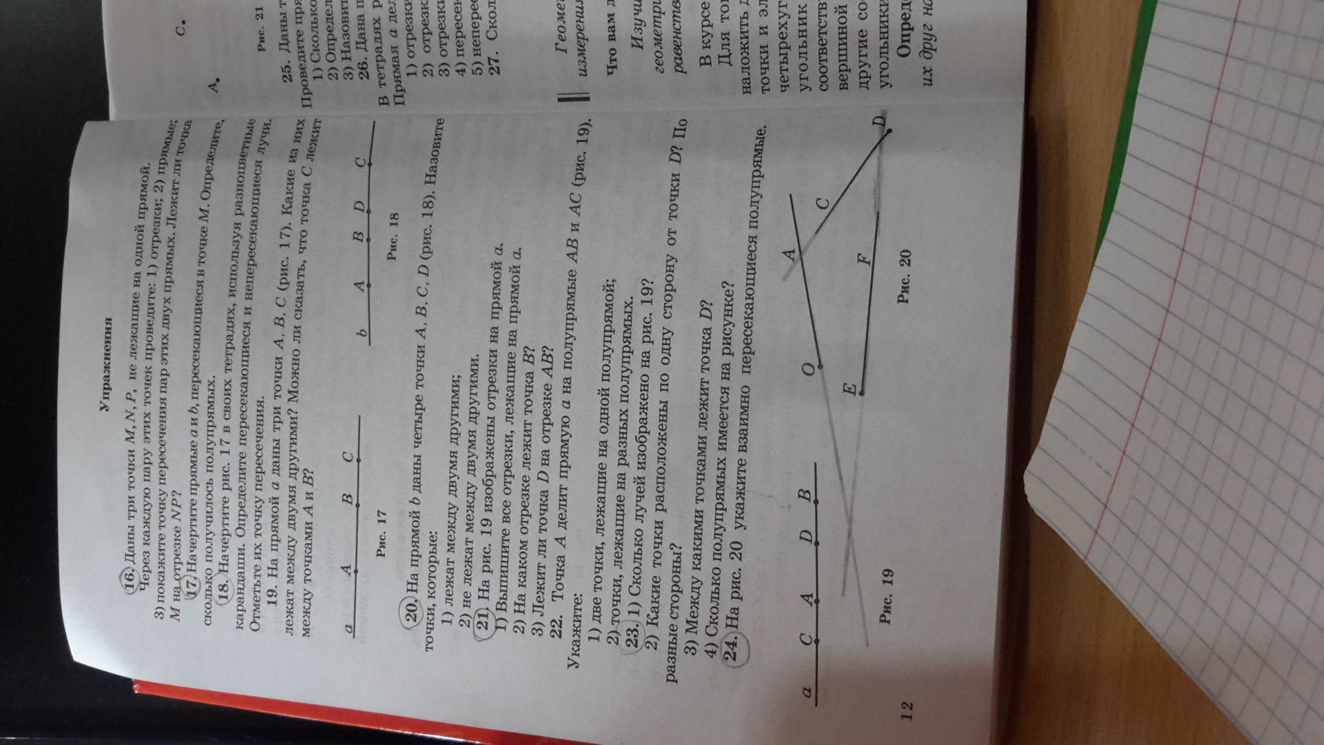 на рисунке 19 изображены отрезки на прямой а Выпишите все отрезки лежащие на прямой А на каком отрезке лежит точка B лежит ли точка д на отрезке A B