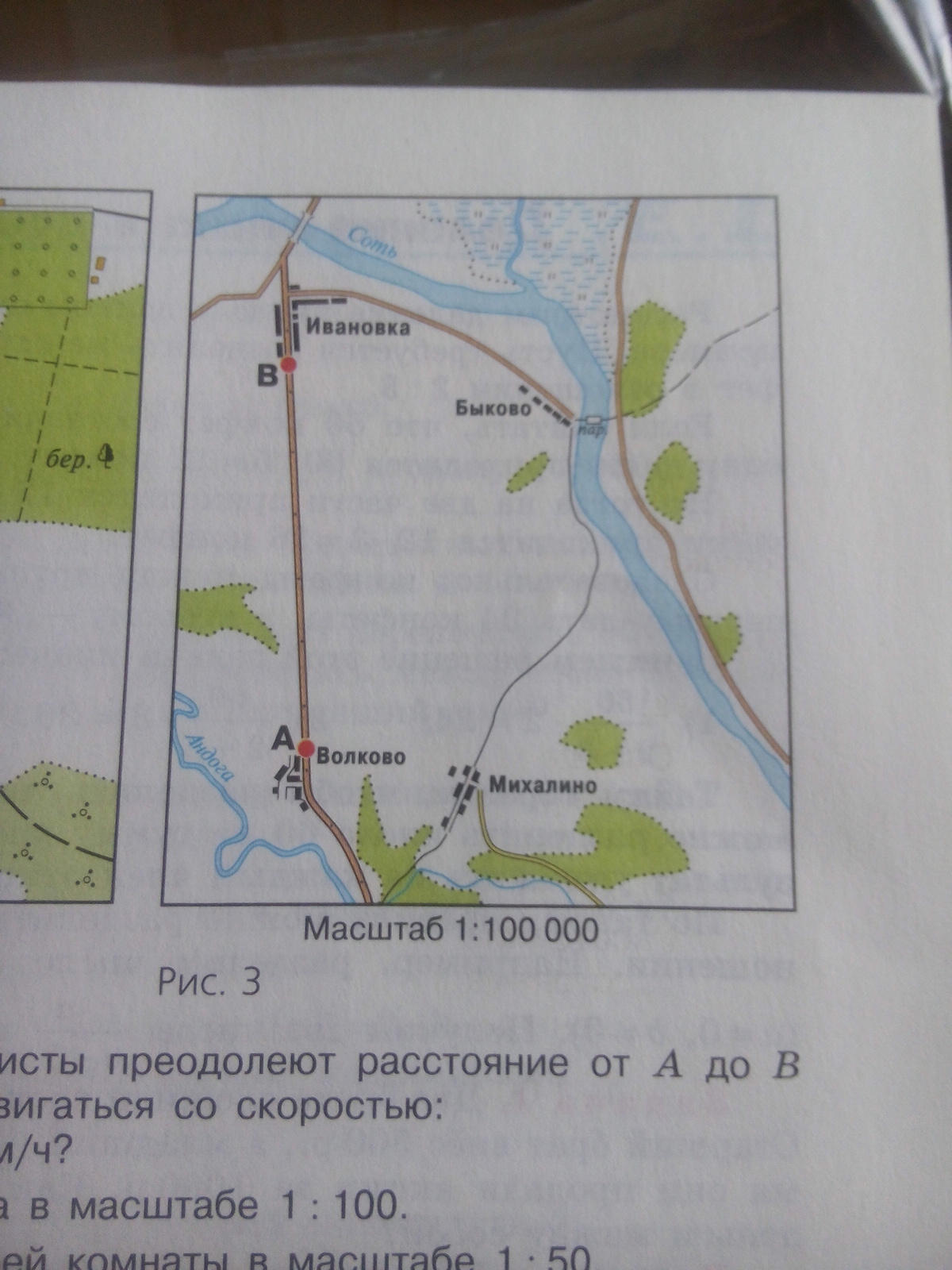 за сколько часов туристы преодалеют расстояние от A до B (рис.3) , если будут двигаться со скоростью: