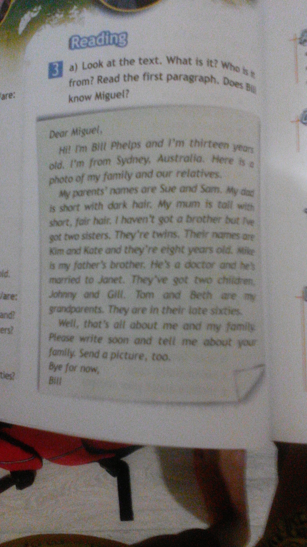 Чтение3 а) Рассмотрите текст. О чем он? Кто в нем откуда? Прочитайте первый параграф. Знает ли Билл Мигель?