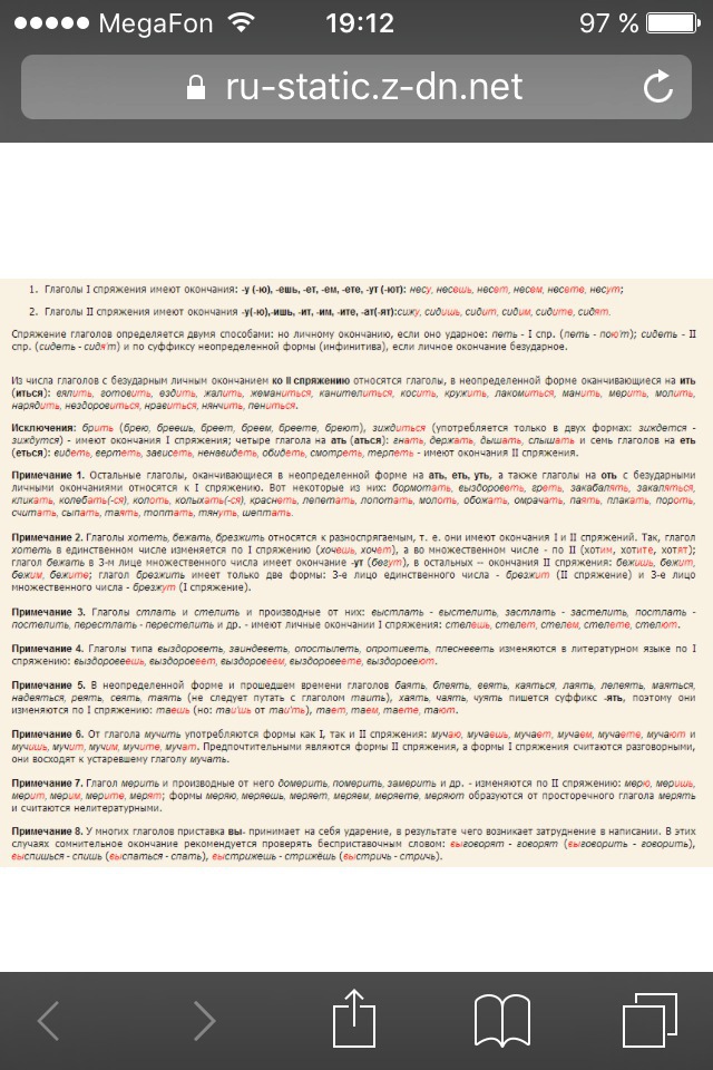 1 спряжение: брить бороду, стелить кровать, думать о ней, сунуть руку, работать днем, хочу игрушку.