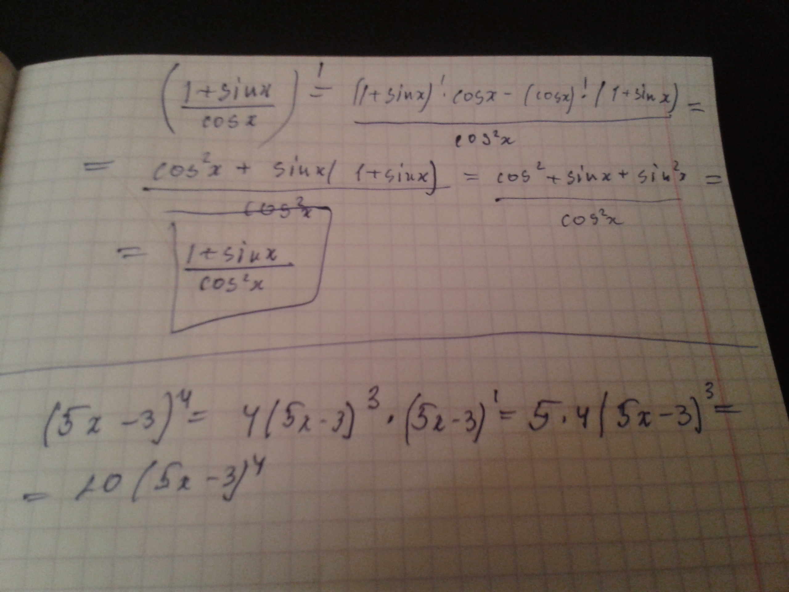 Ответ: 1). (1+sinx)/(cos²x) ; 2). 20(5x-3)³
