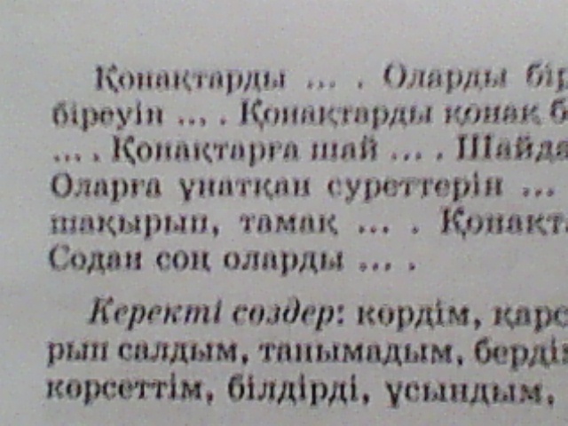 Қонақтарды қарсы алдым. Оларды бірінші рет көрдім. Екеуін танымадым, біреуін таныдым. Қонақтарды қонақ бөлмесіне кіргіздім. Бәрінде төрге шығардым. Қонақтарға шай ұсындым. Шайдан соң оларға суреттер көрсеттім. Оларға ұнатқан суреттерін сыйладым. Одан кейін дастарханға шақырып, тамақ бердім. Қонақтар ризашылықтарын білдірді. Содан соң оларды шығарып салдым.