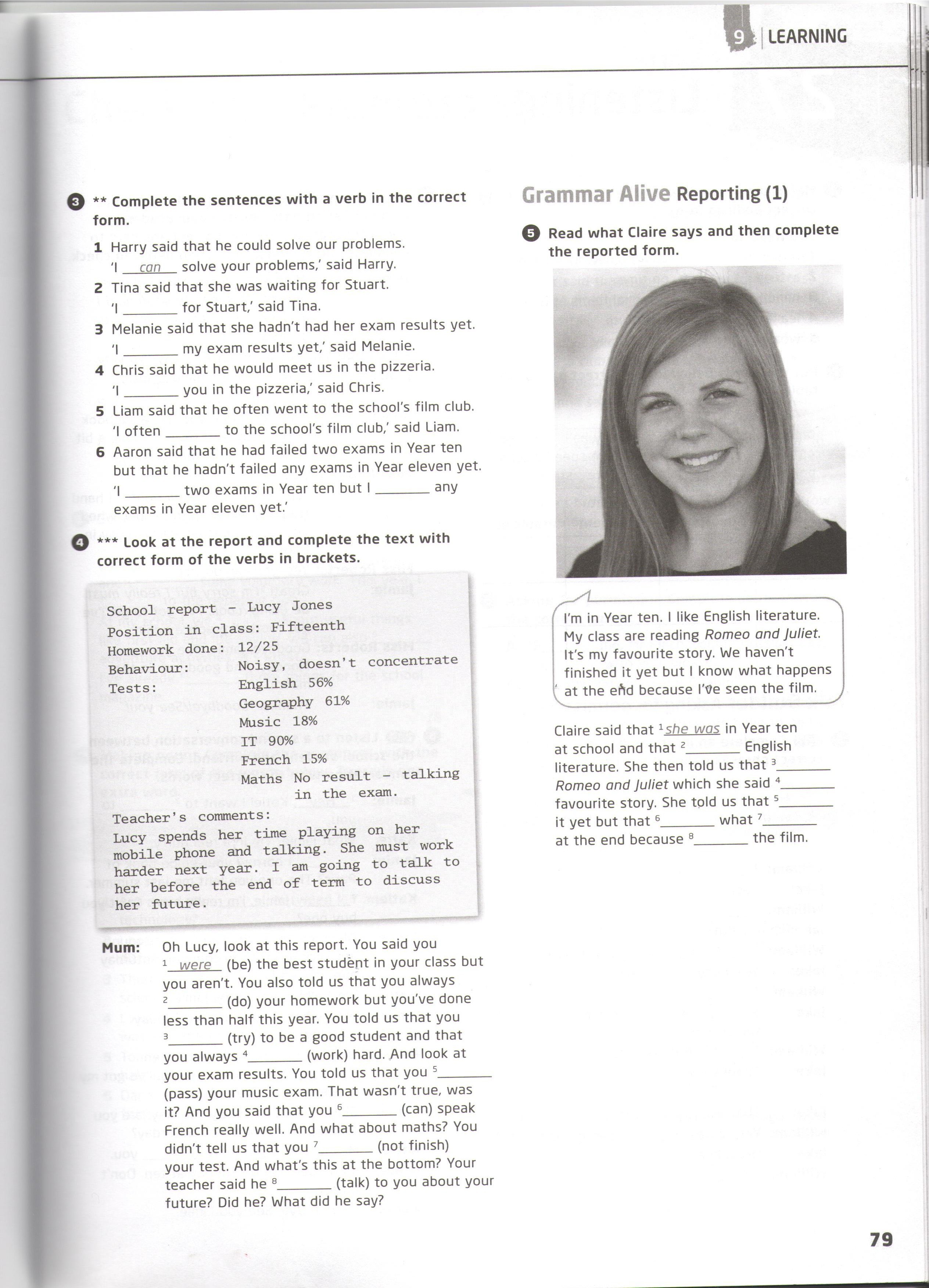 5.2 she liked; 3 her class were reading; 4 was her; 5 they hadn`t finished; 6 she knew; 7 happened; 8 she had seen