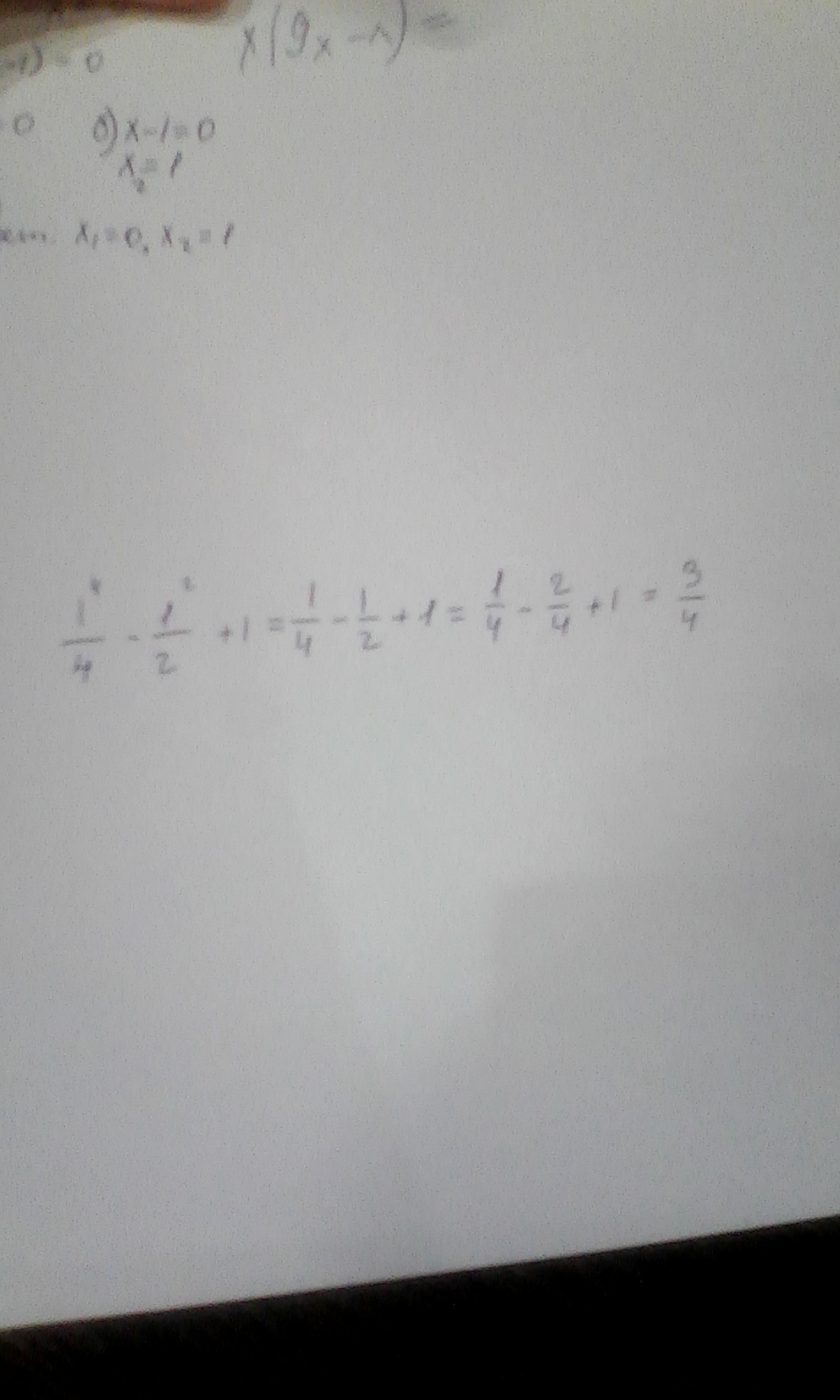 1/4(дробь)-1/2(тоже дробь)+1=6/8 (шесть восьмых) Ну или после сокращения будет 3/4, как написано выше