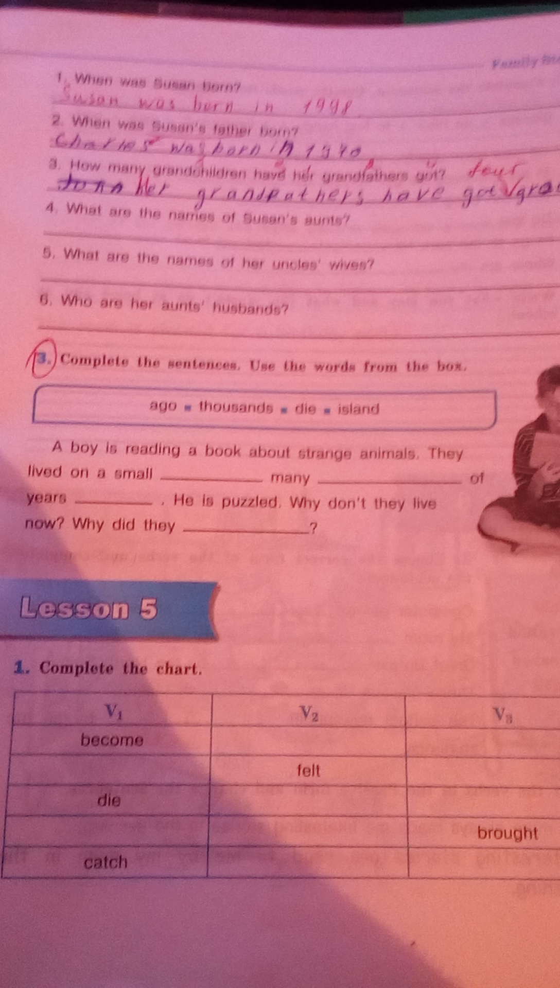 упражнение 3 island, thousand, ago,die