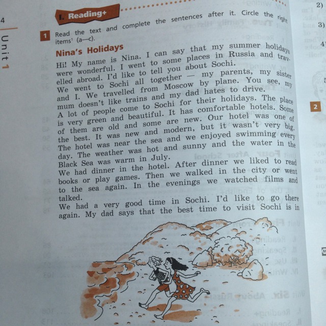 Привет! Меня зовут Нина. Я могу сказать, что мои каникулы были замечательными. Мы путешествовали по России и заграницой. Я хочу рассказать о Сочи.