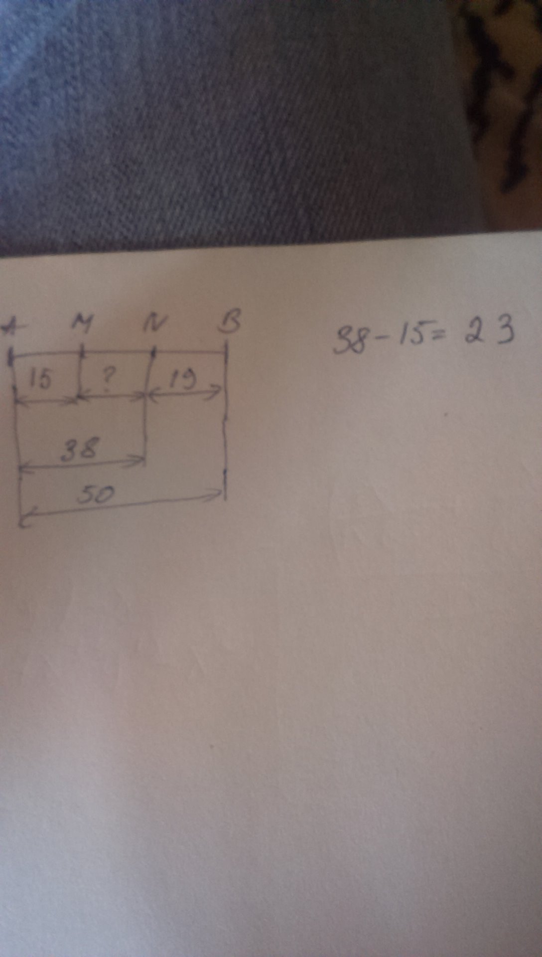 Длина отрезка АВ равна 50 см. Точки M и N лежат на этом отрезке. Найдите длину отрезка MN, если AN =38 см, AM=15 см NB = 19 см, MB =26 СМ